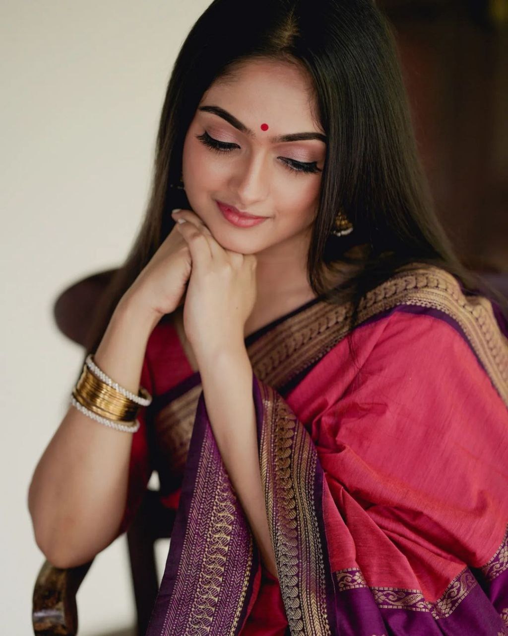 🎨 Color: Stunning gajri color saree paired with a contrast blouse for a chic and vibrant look.